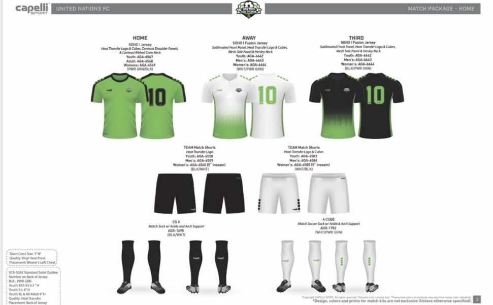 All UNFC Competitive players must order their Capelli uniform clicking on the link. Please follow the instructions to complete uniform order